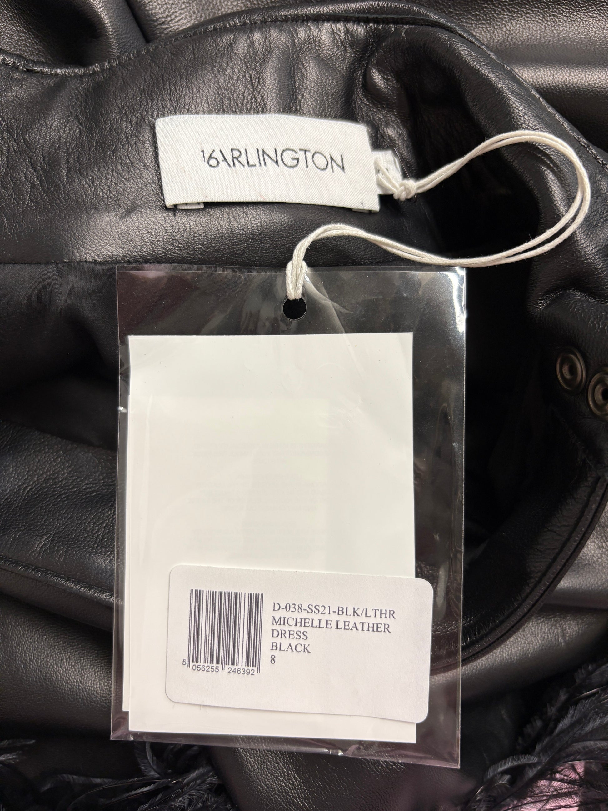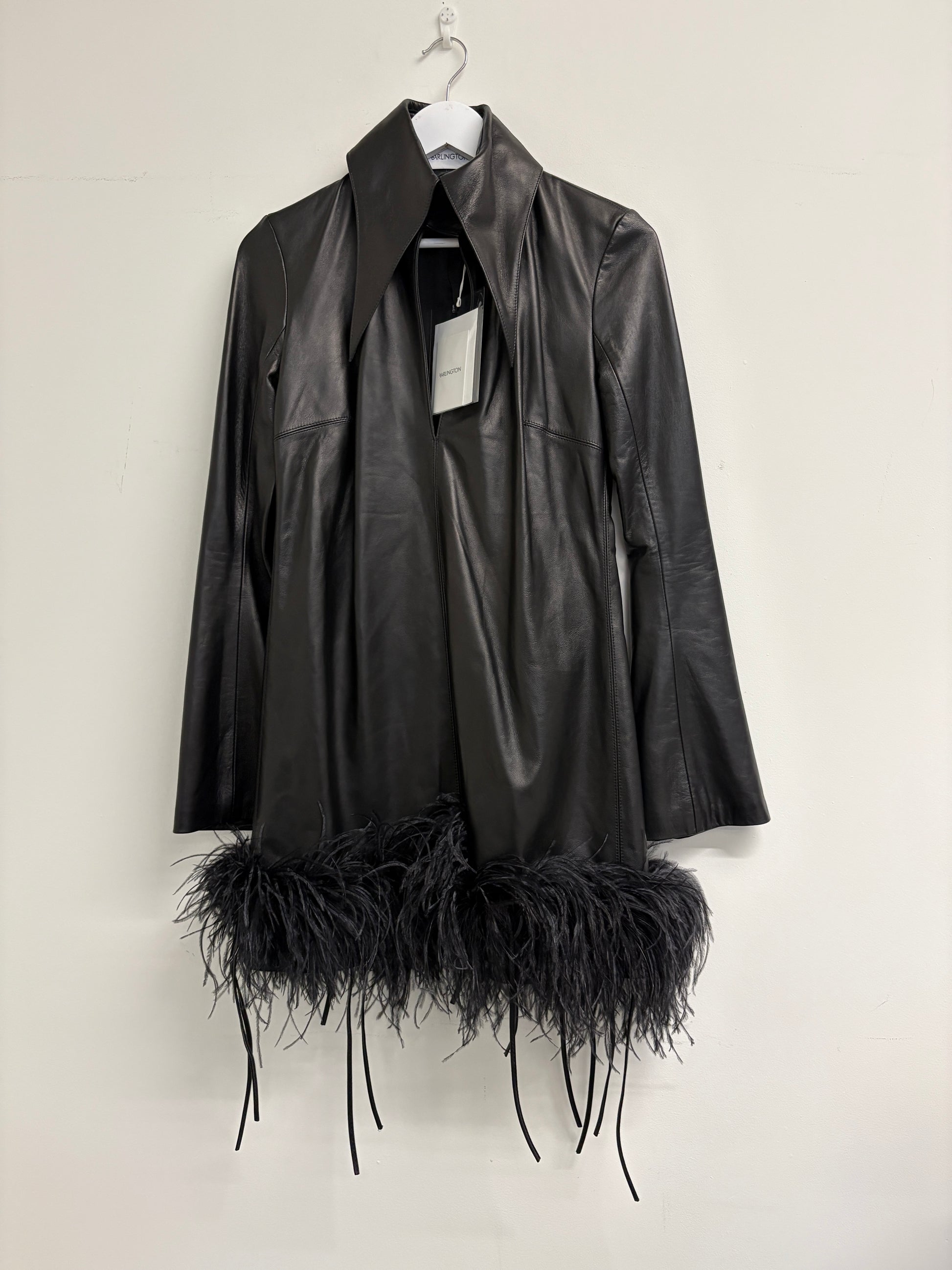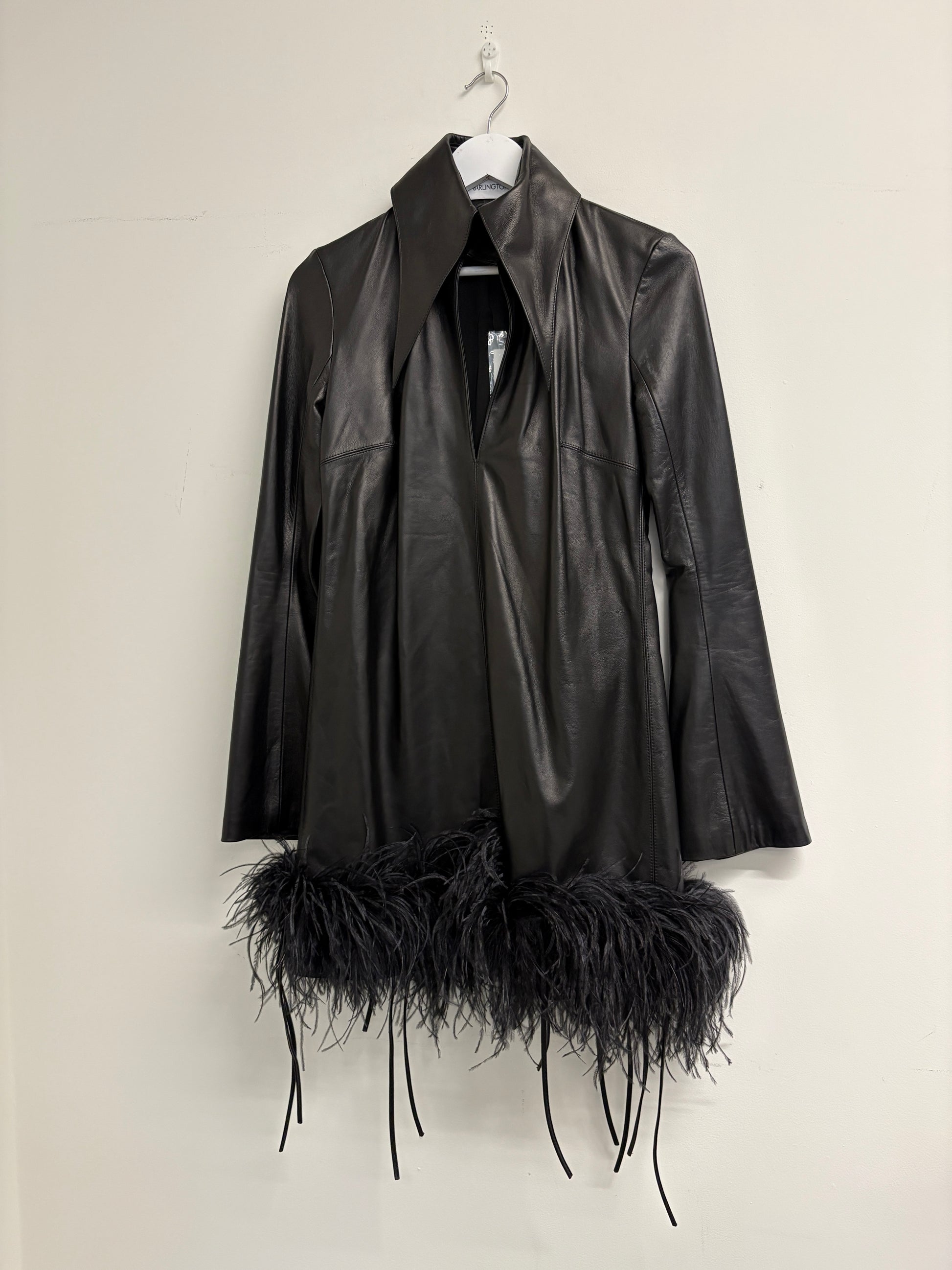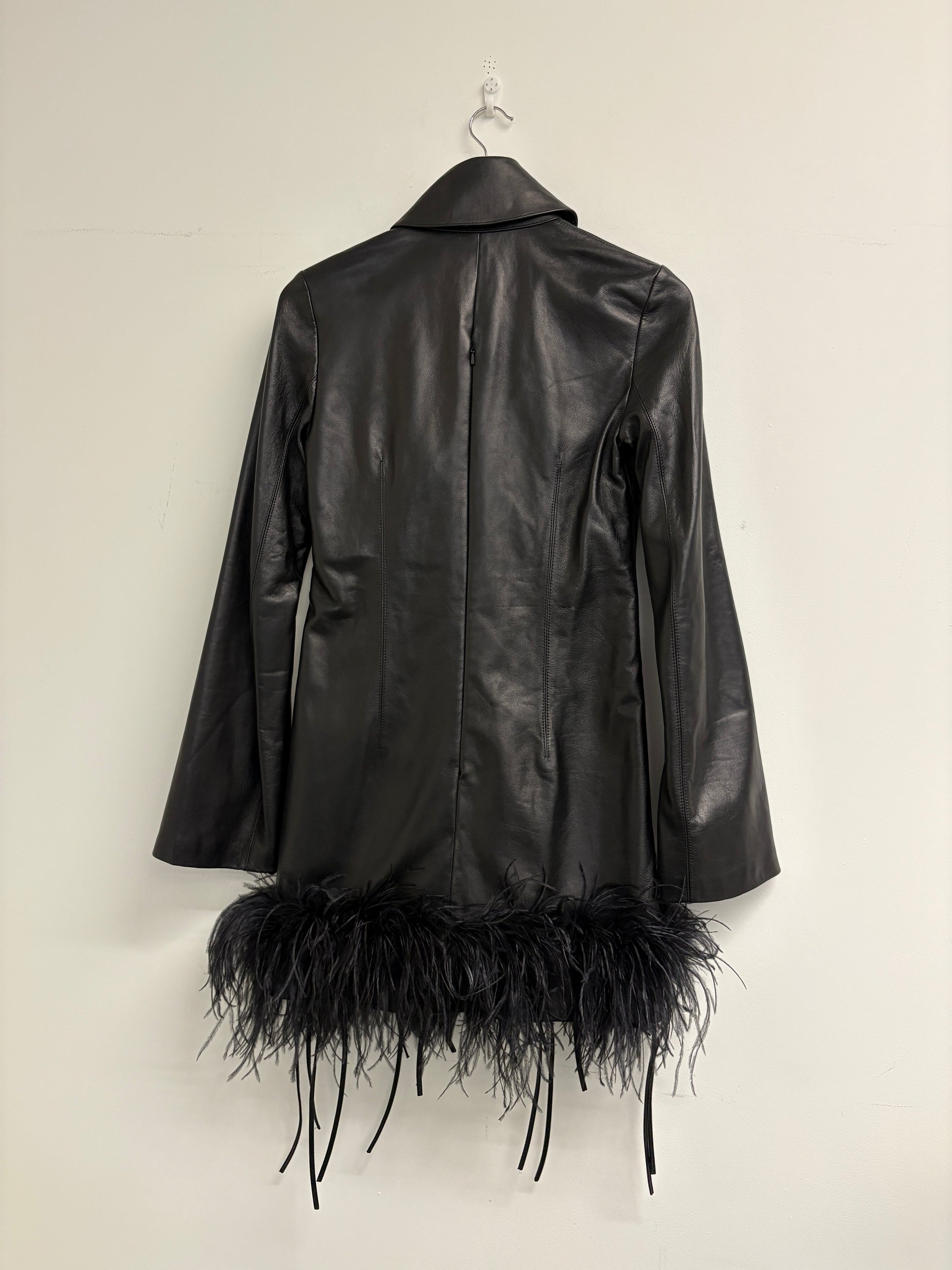 16 Arlington Black Michelle Feather Trimmed Leather Mini Dress (pre-owned)
