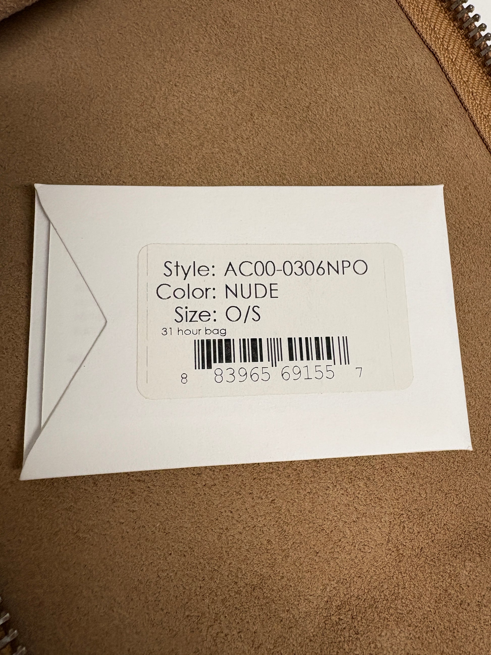 3.1 PHILLIP LIM Calfskin 31-Hour Bag in Nude / Tan. This tote is finely crafted of polished beige calfskin leather. The unique bag features a large fold-over top with double-top zippers. The top zips to a spacious matching suede interior with a hanging leather pocket.