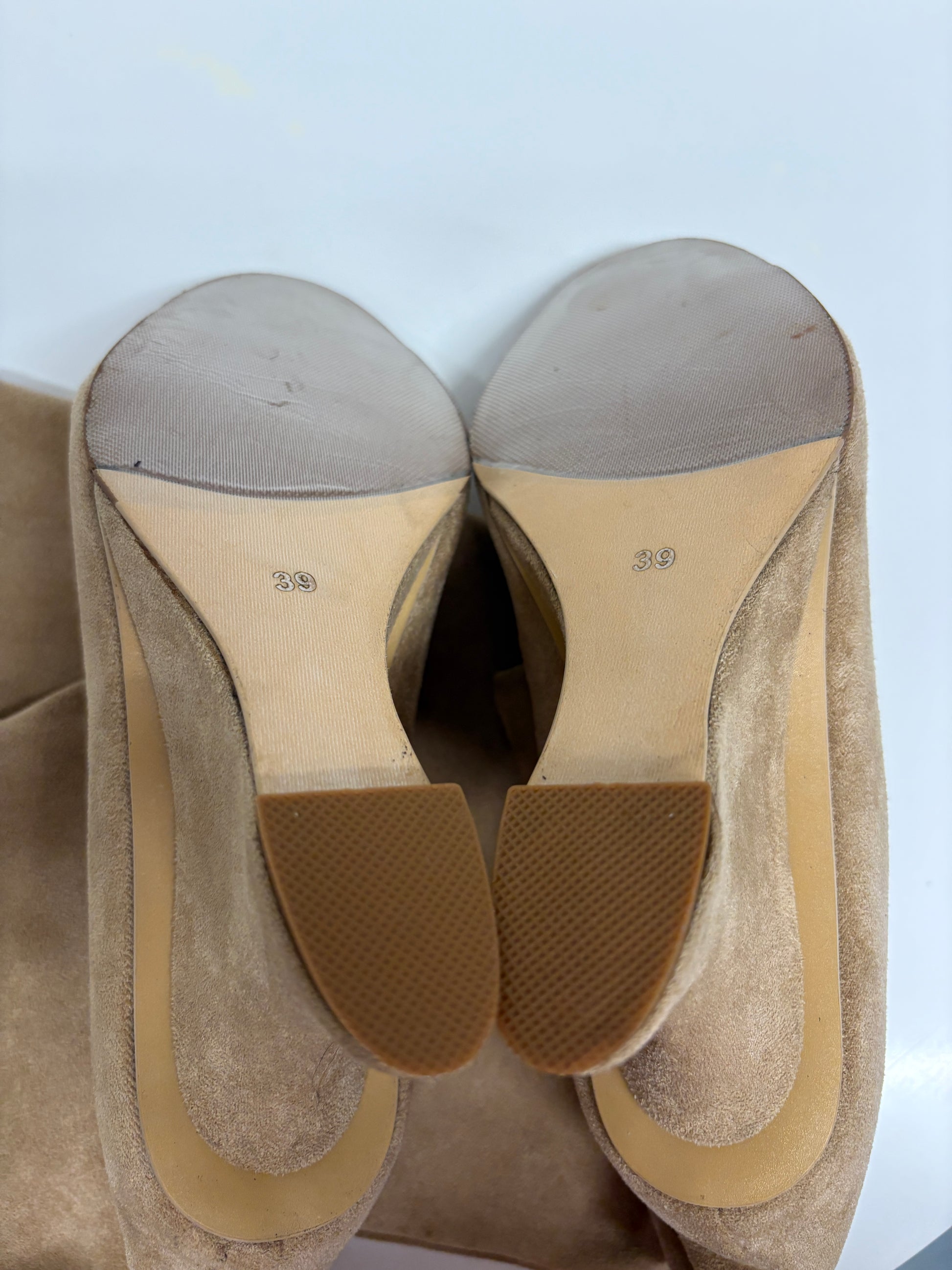 Beige Suede Peep-Toe Boots (pre-owned)