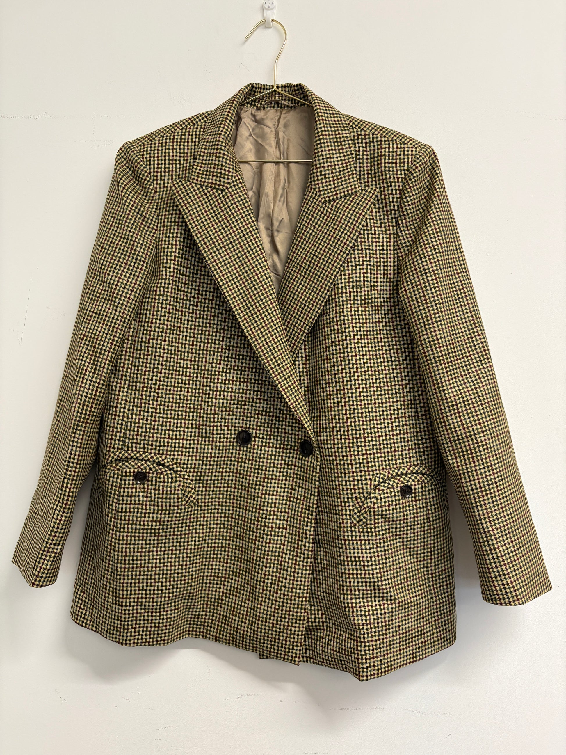 Double-breasted oversize pied-de-poule wool blazer
