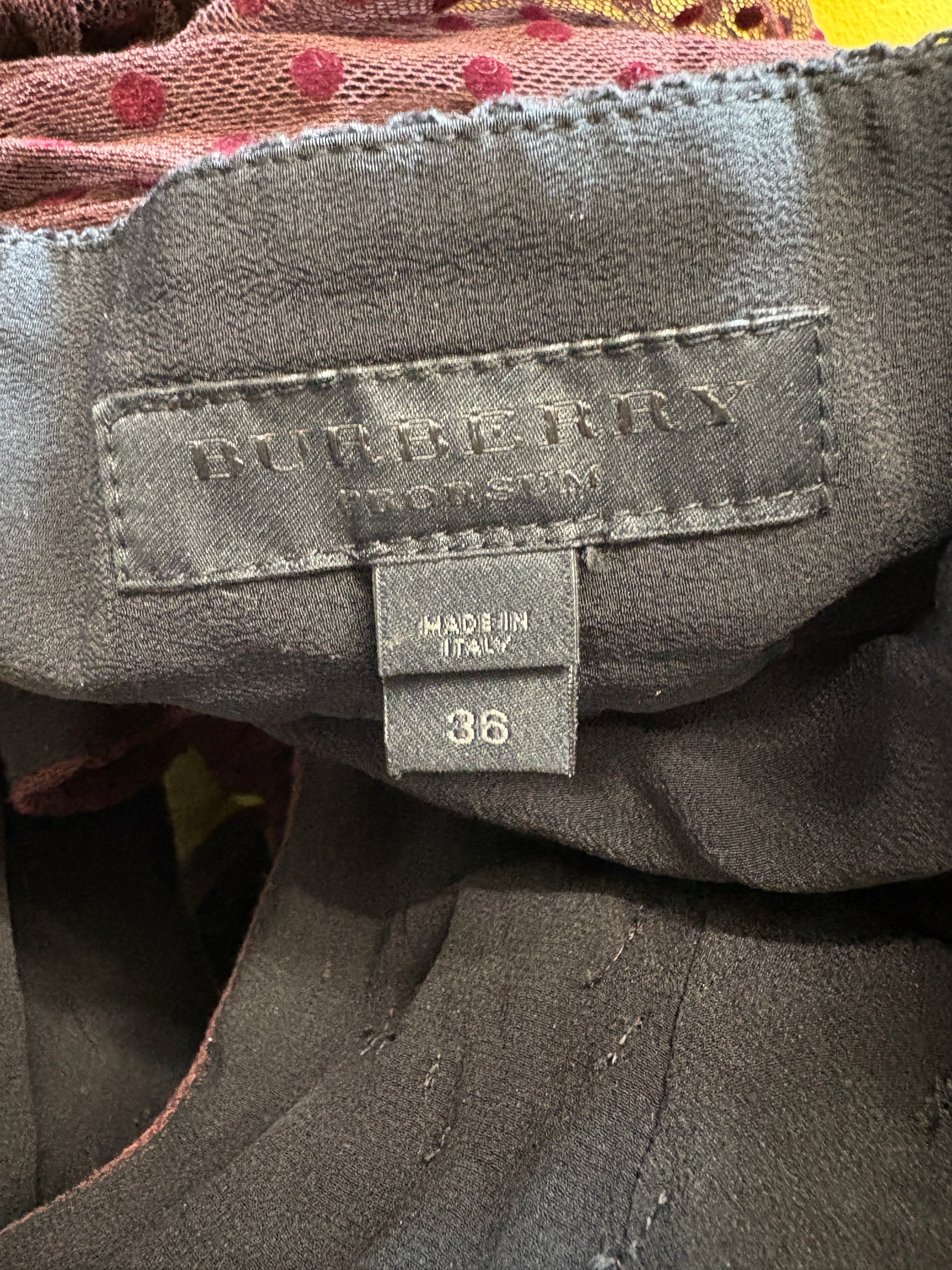 Burberry Burgundy Polkadot Mesh High Neck Gown