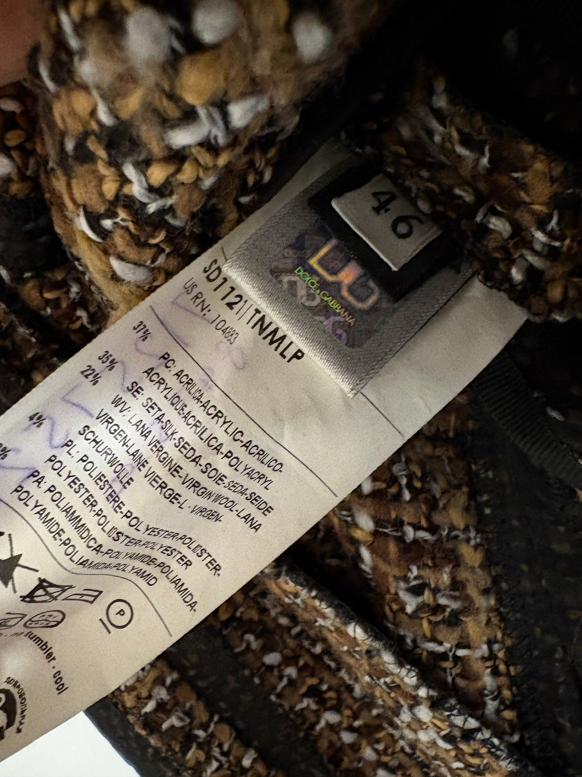 Dolce and Gabbana Brown Tweed Dress With Black Mesh Overlay