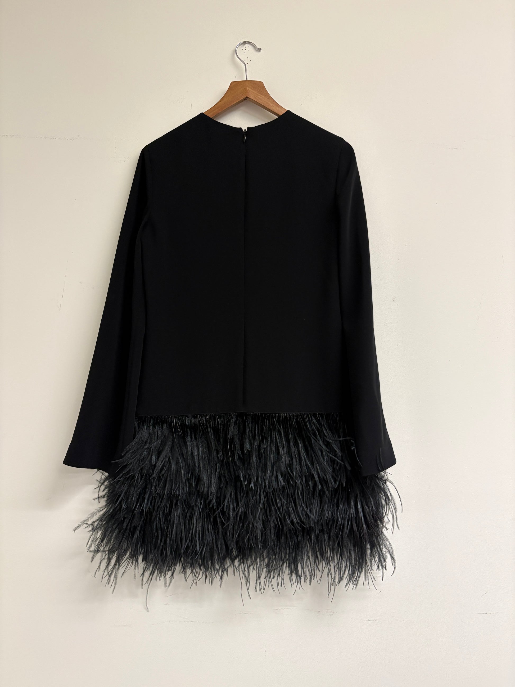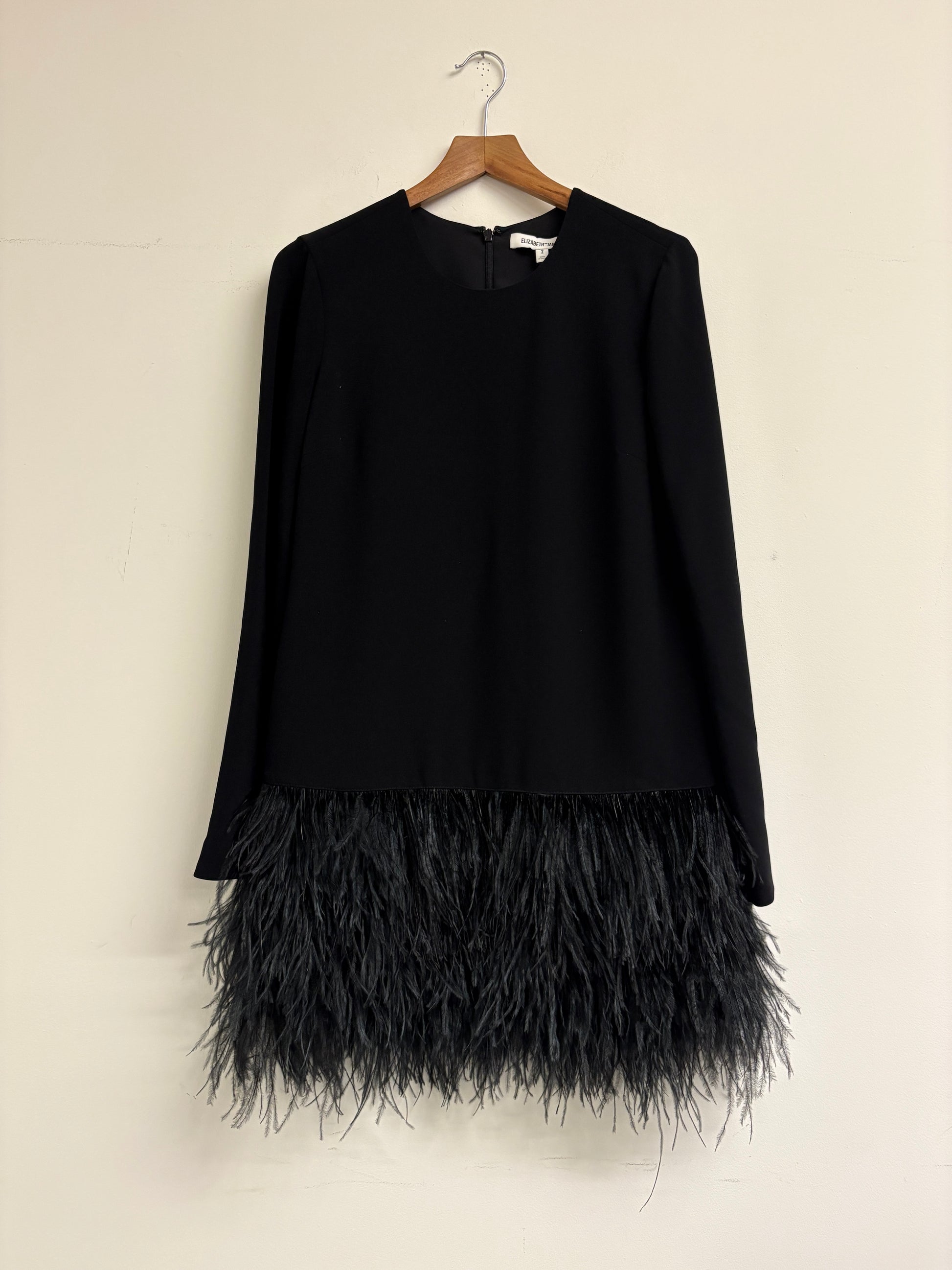 Elizabeth and James Serena Black Ostrich Feather Trim Mini Dress