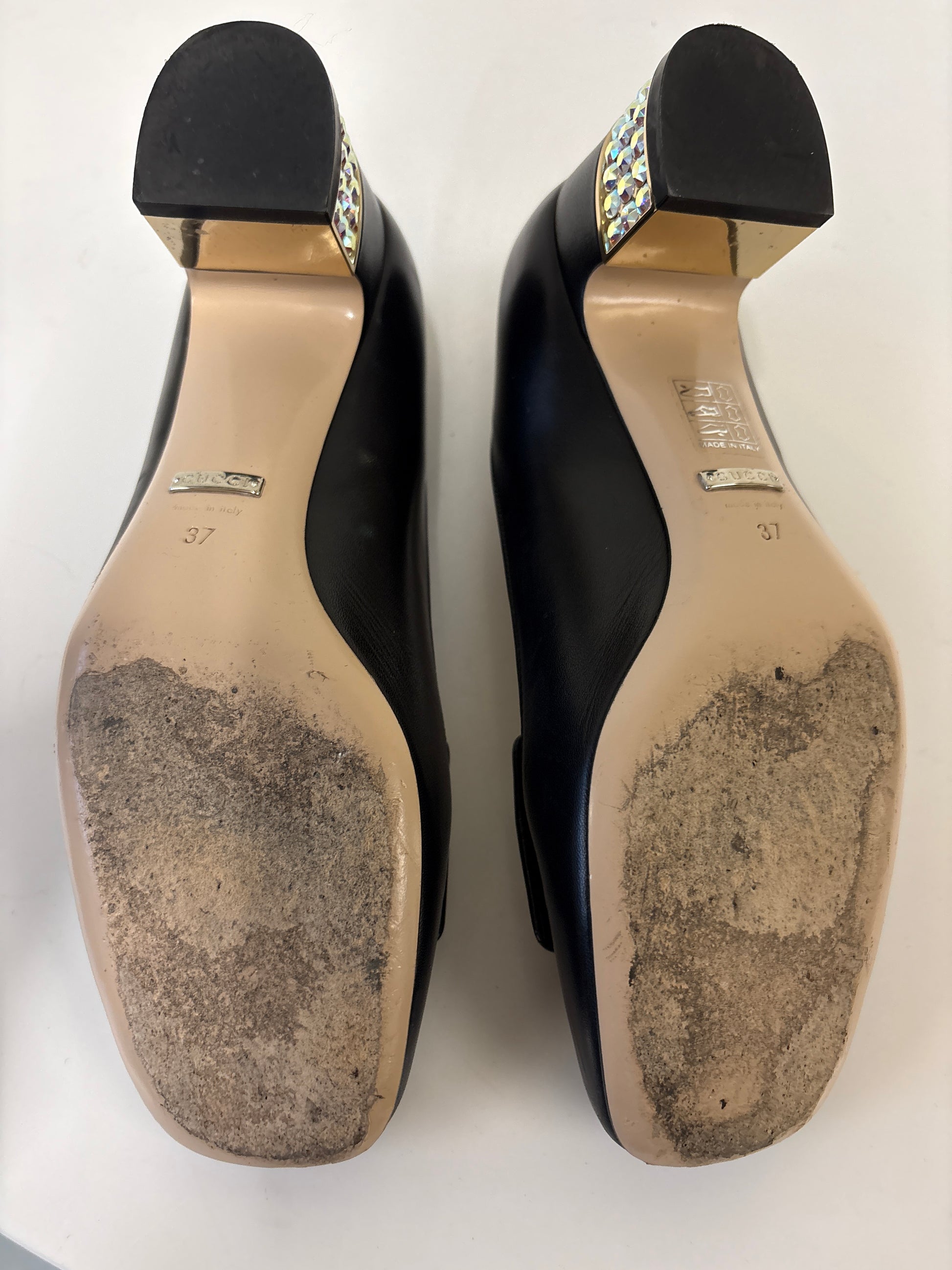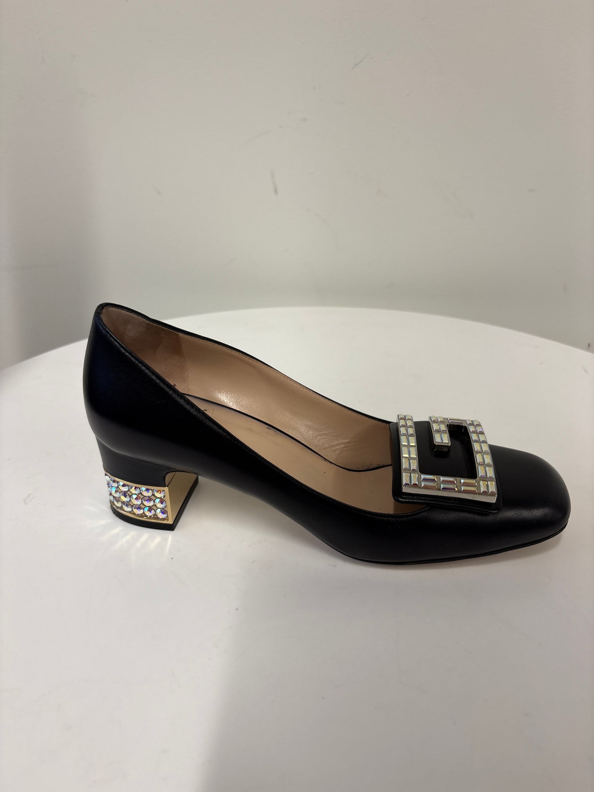Gucci Madeleine Black Mid Heel Pumps With Crystal G