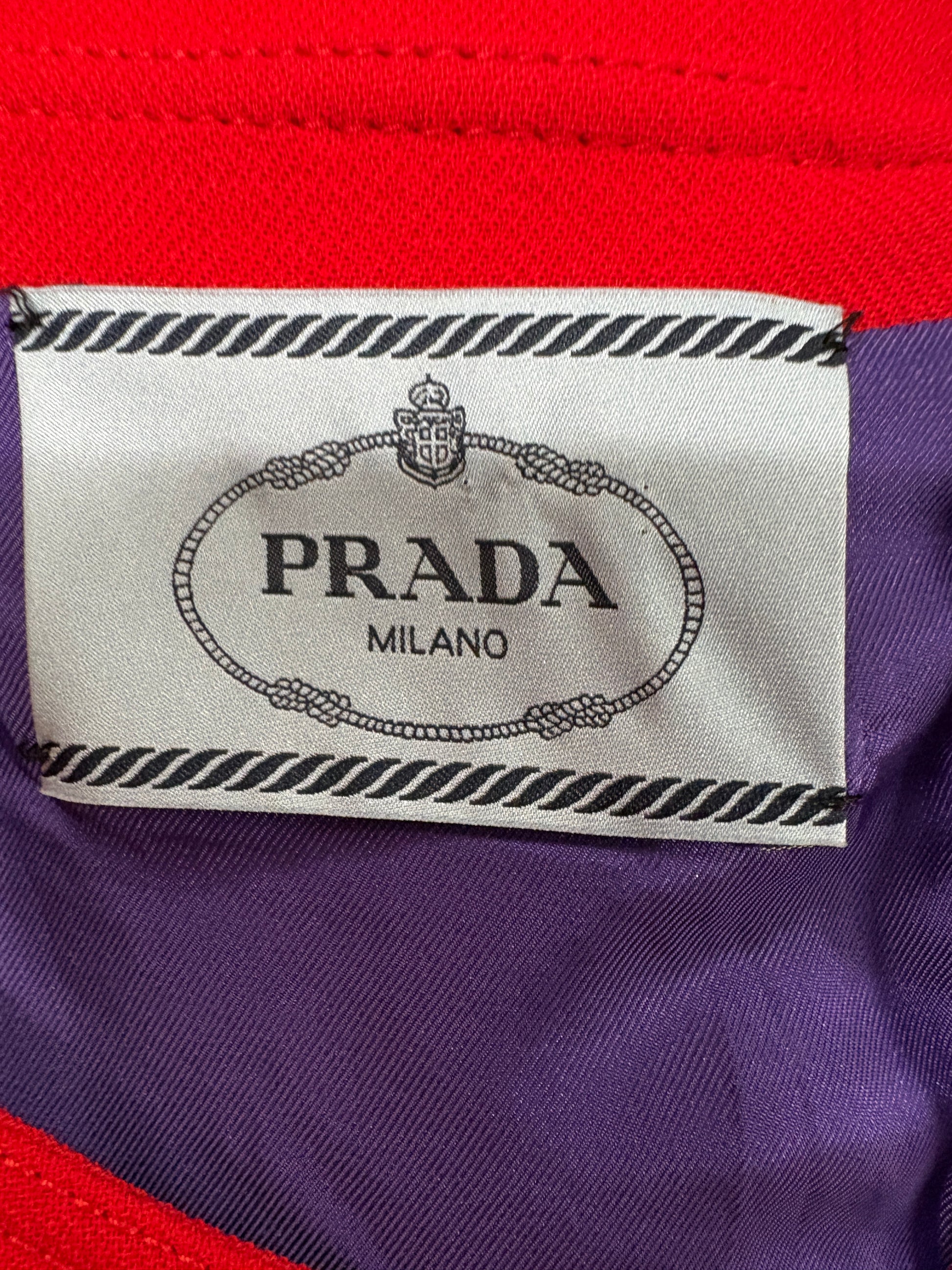 Prada Red Shift Dress Wiith Gold Buttons