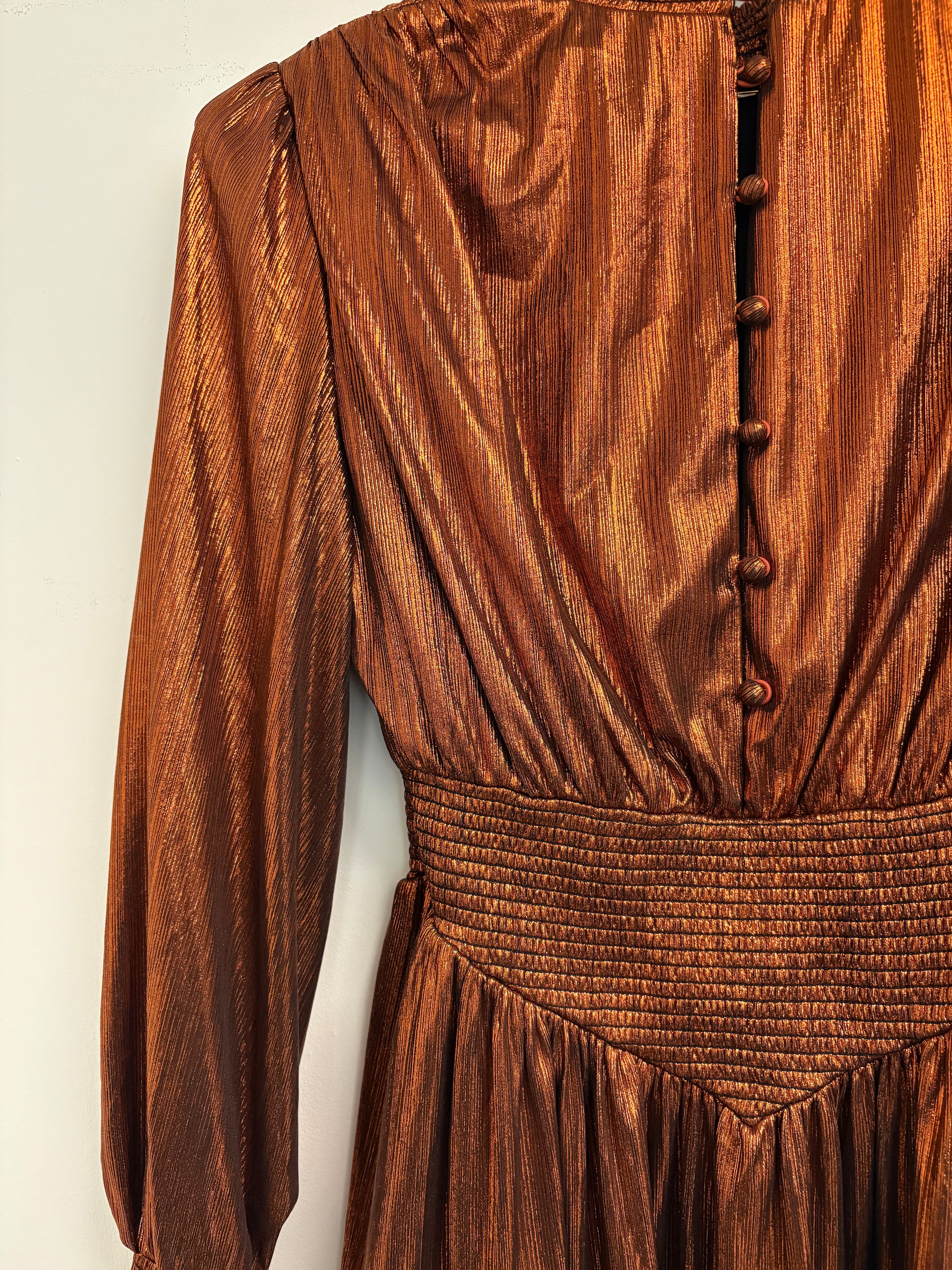 Retrofete Metallic Melody Orange Longsleeved Mini Dress