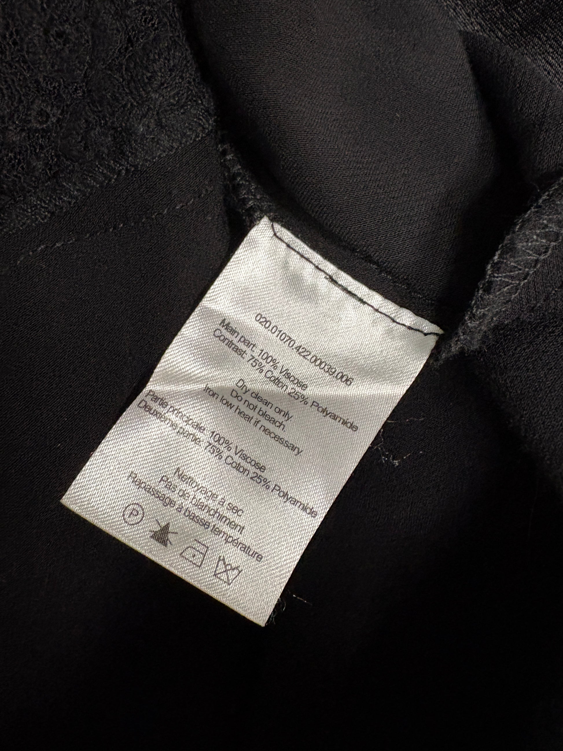 Rixo Black Stassie Satin Midi Skirt With Lace Trim