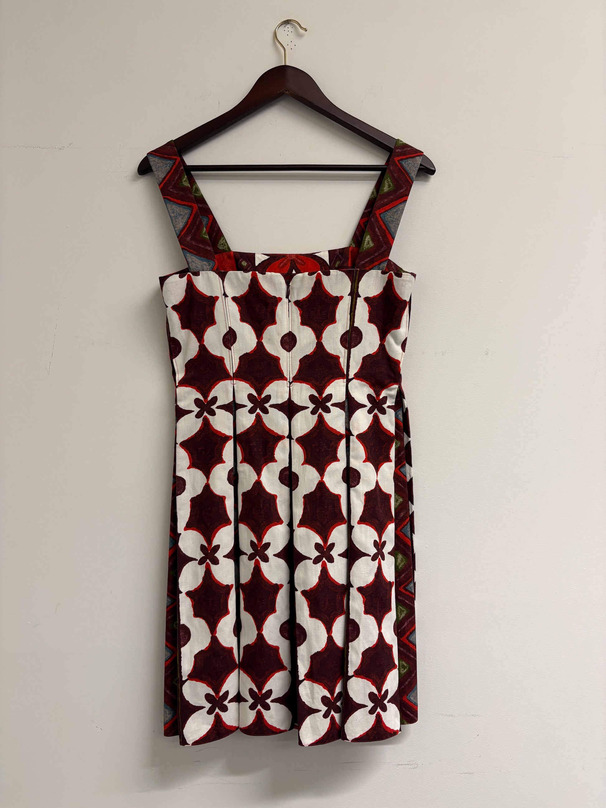 Valentino Red Cuban Flower Print Pleated Mini Dress