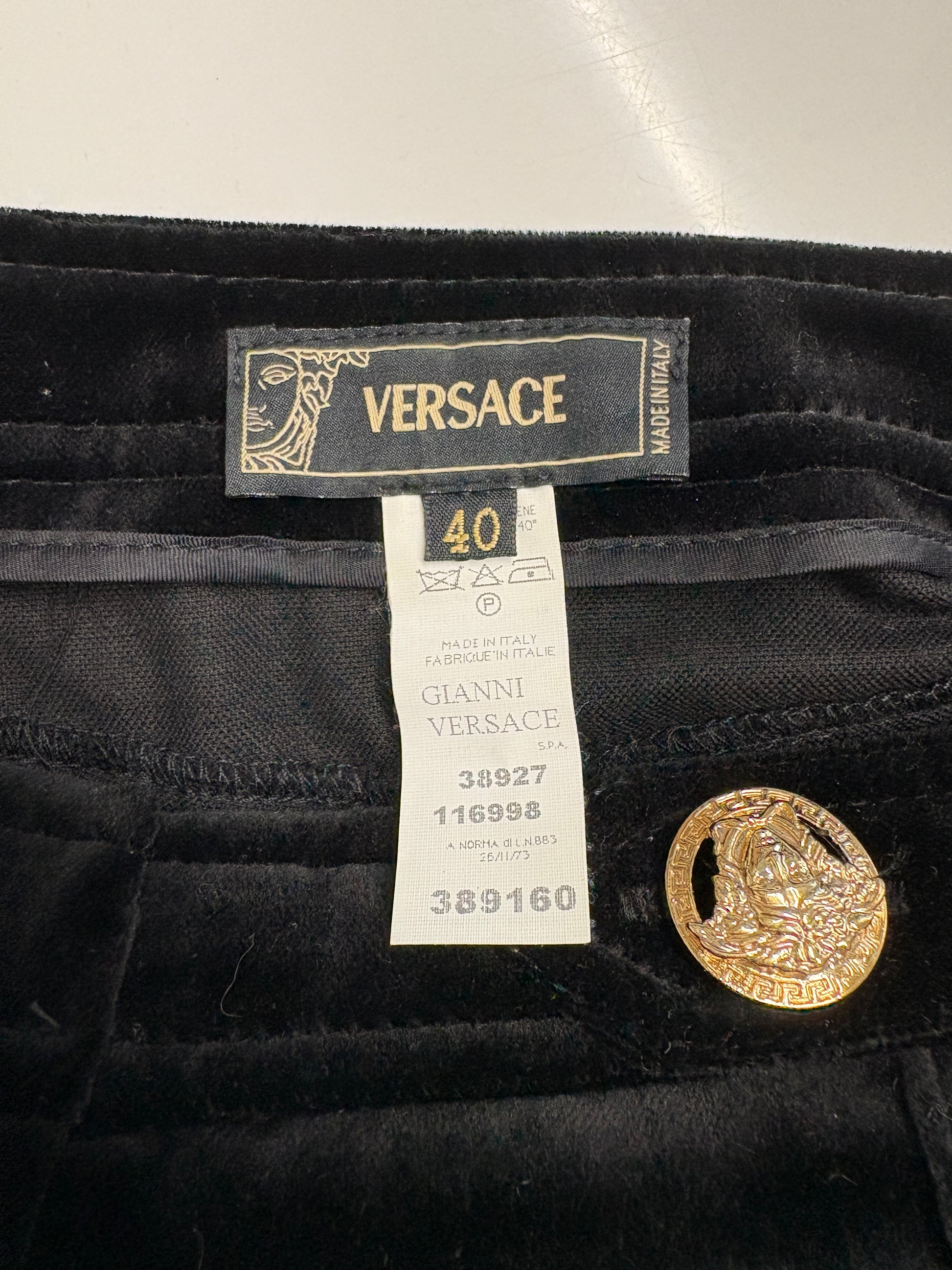 Versace Black Velvet Flare Trousers With Gold Buttons (pre-owned)